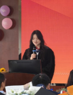 之后,本科生代表章俊楠和研究生代表王云霄分别发表了感人至深的演讲。她们回顾了在校的点点滴滴,表达了对学校和师长的感激之情,并对未来充满了憧憬和信心。她们的话语激励着每一位毕业生,带着母校的期望和祝福,勇敢地迈向人生的新篇章。