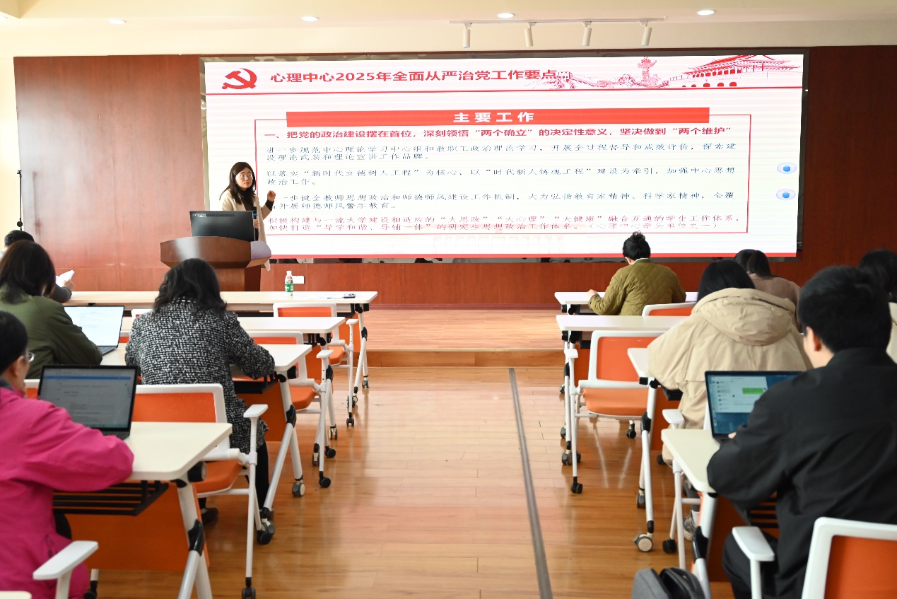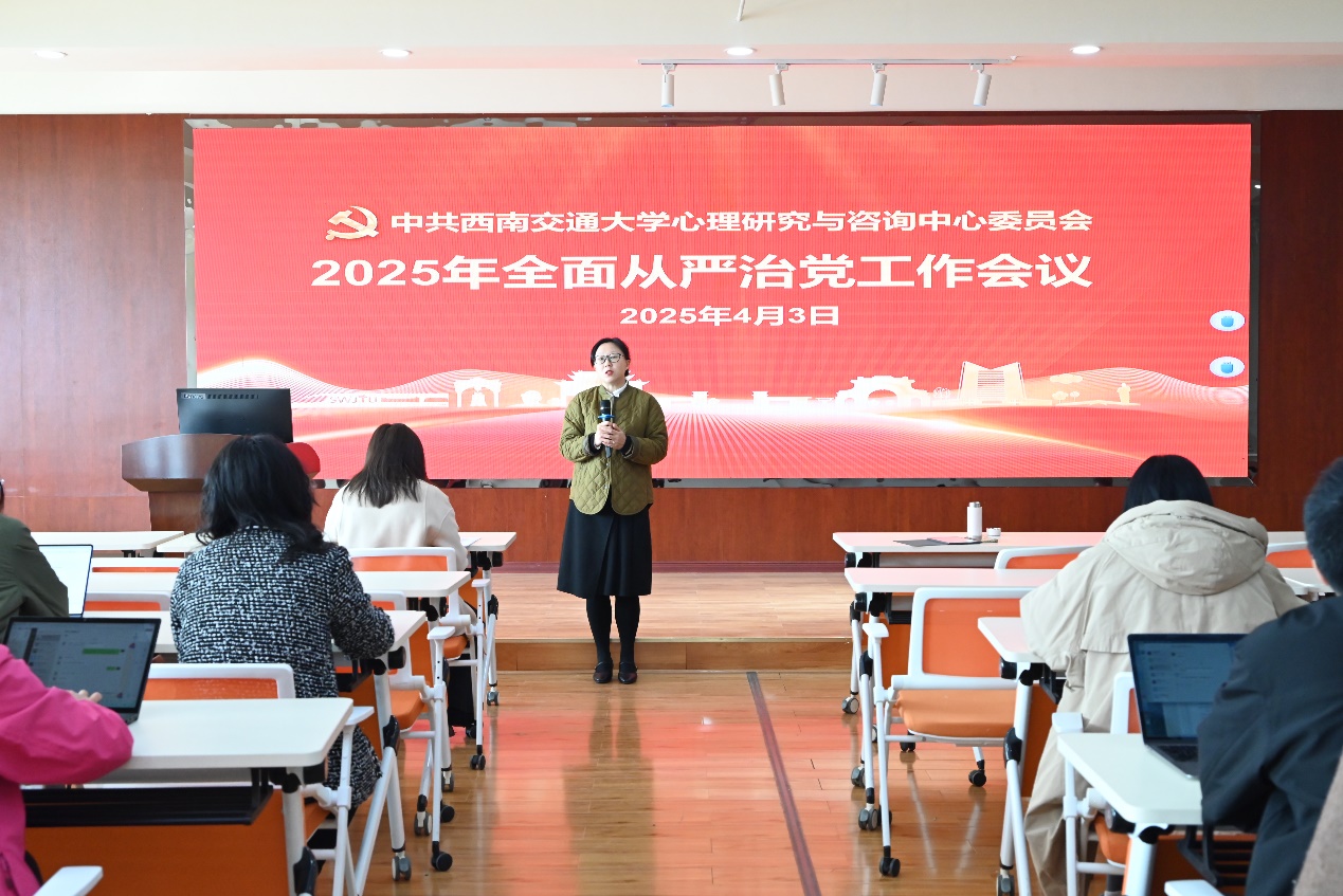 会议以“坚持用改革精神和严的标准管党治党,以全面从严治党新成效为加快建设中心内涵发展、谱写‘大心理’‘大思政’和‘大健康’融合发展新篇章提供坚强保障”为主题,中心党委书记刘咏梅全面传达了习近平在二十届中央纪委四次全会上发表的重要讲话、2025年教育系统全面从严治党工作视频会议精神、四川省纪委十二届四次全会精神和学校2025年全面从严治党会议精神,系统部署了2025年全面从严治党重点任务。