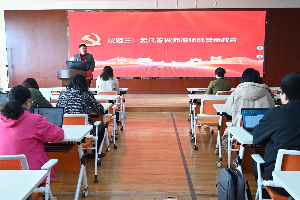 会议第三项开展了师德师风警示教育,以案为鉴敲响师德师风警钟。中心党委副书记、纪委书记孟凡春通过通报违反高校教师职业行为典型案例和科研行为典型案例,深入剖析师德失范行为的危害性,明确师德建设是落实立德树人根本任务的关键保障。会议强调,全体教职工要严守《新时代高校教师职业行为十项准则》,坚持“以德立身、以德施教”,坚决杜绝学术不端、违规兼职、收受礼品礼金等行为,切实维护教师队伍的良好形象。通过师德师风专题宣讲进一步夯实作风建设,教育引导全体教师知红线、守底线,营造风清气正的教书育人环境。