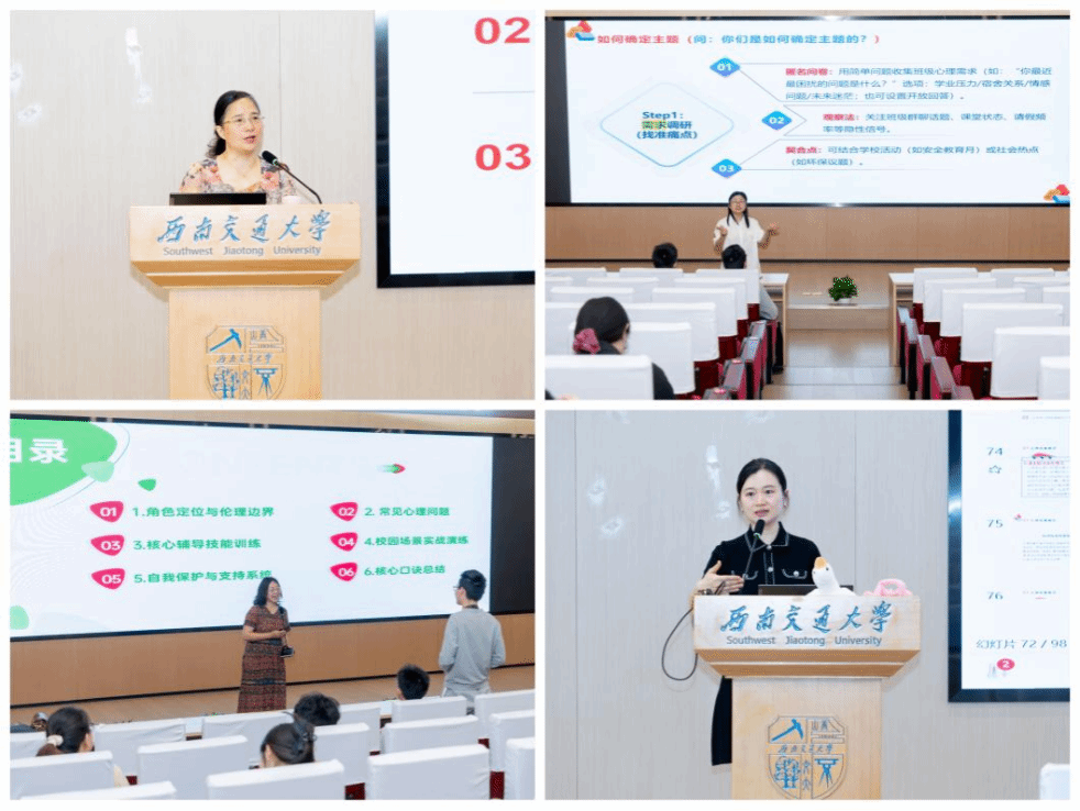 最后一个培训专题是心理主题班会的设计与实施。通过“人际互动”“压力管理”等团辅示范活动,提升心理委员在班级心理特色活动中的组织能力。许多学员反馈,此类培训显著增强了他们服务班级的使命感和专业自信。