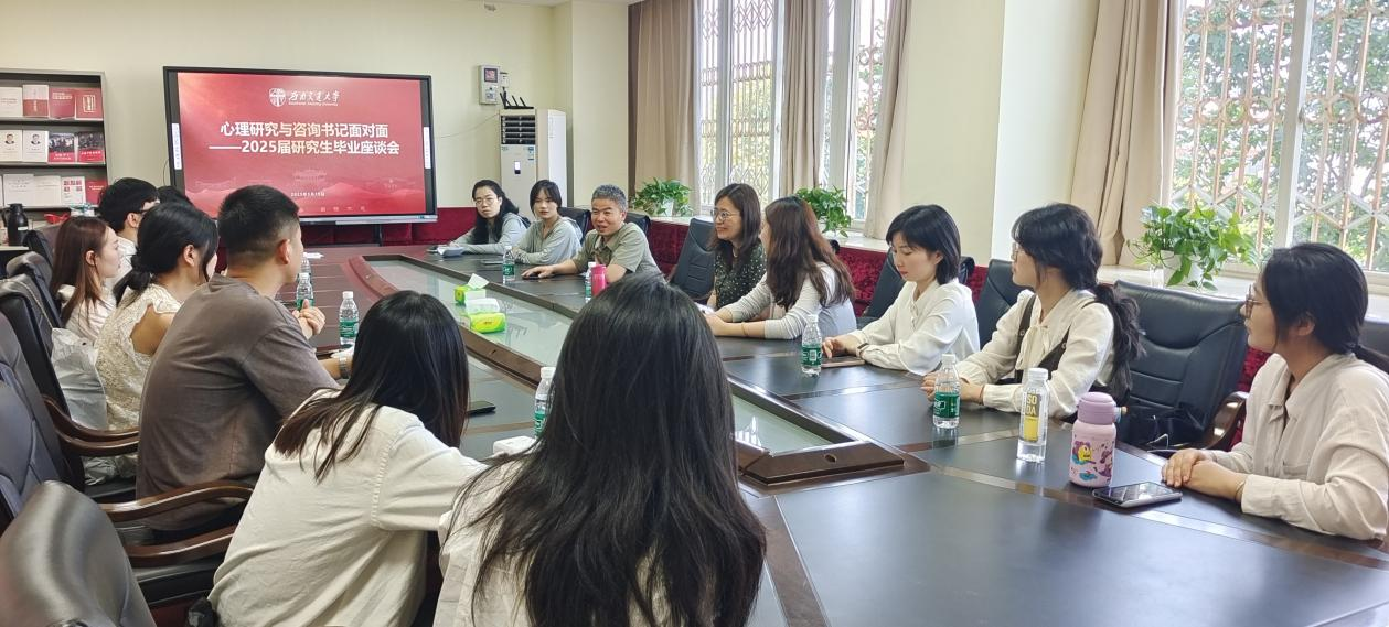 在犀浦校区X5429教室召开"2025届毕业生书记面对面座谈会暨廉洁教育专题党课"。中心党委书记刘咏梅、副主任李启明、辅导员樊菊及全体研究生毕业生参加座谈会。