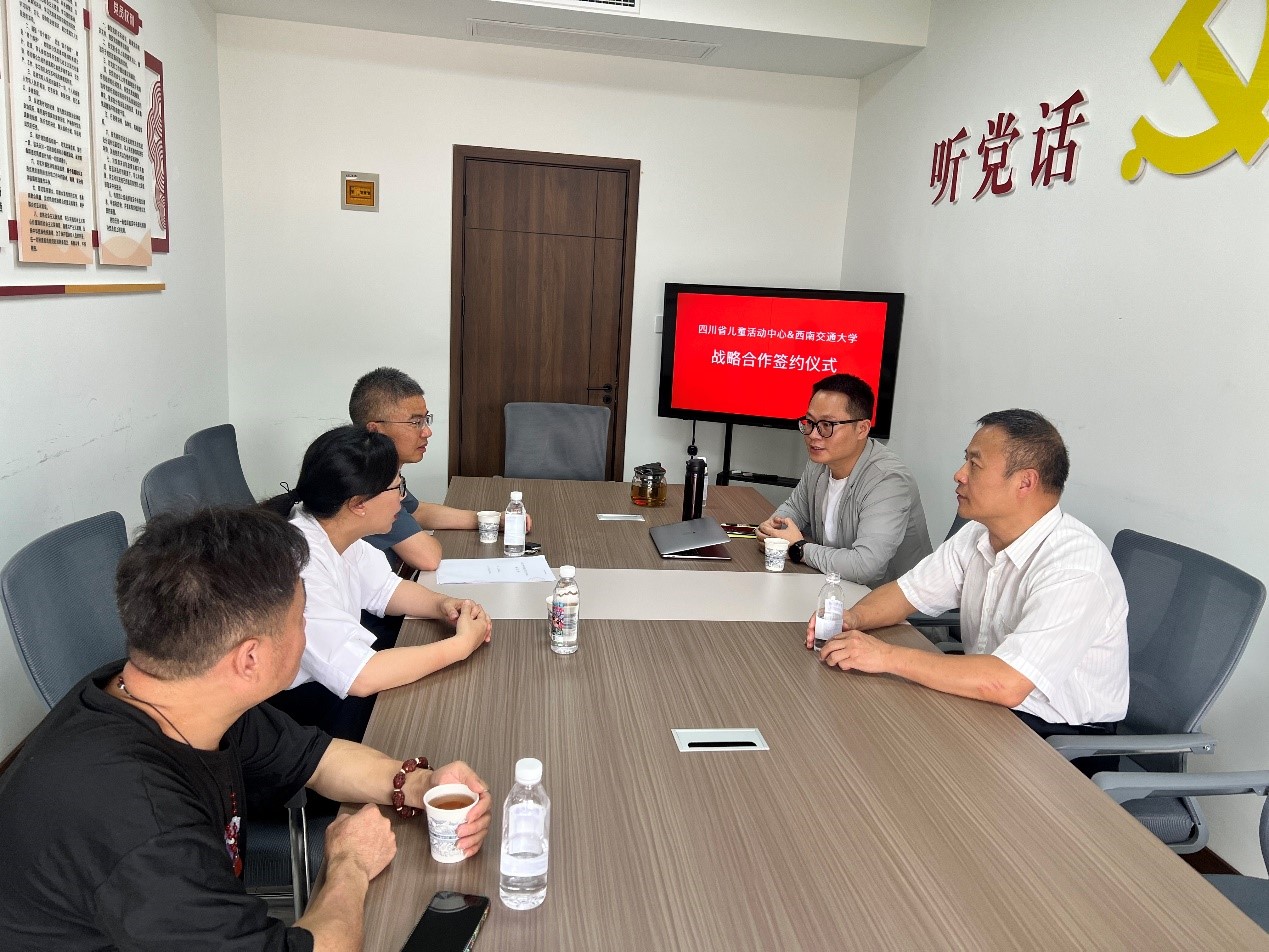 高雪梅主任、李启明副主任前往四川省儿童活动中心,开展心理学专业实习基地建设校企合作洽谈会。四川省儿童活动中心周恩睿主任、活动部部长夏欢欢、杨凡教授等共同出席了此次会议。
