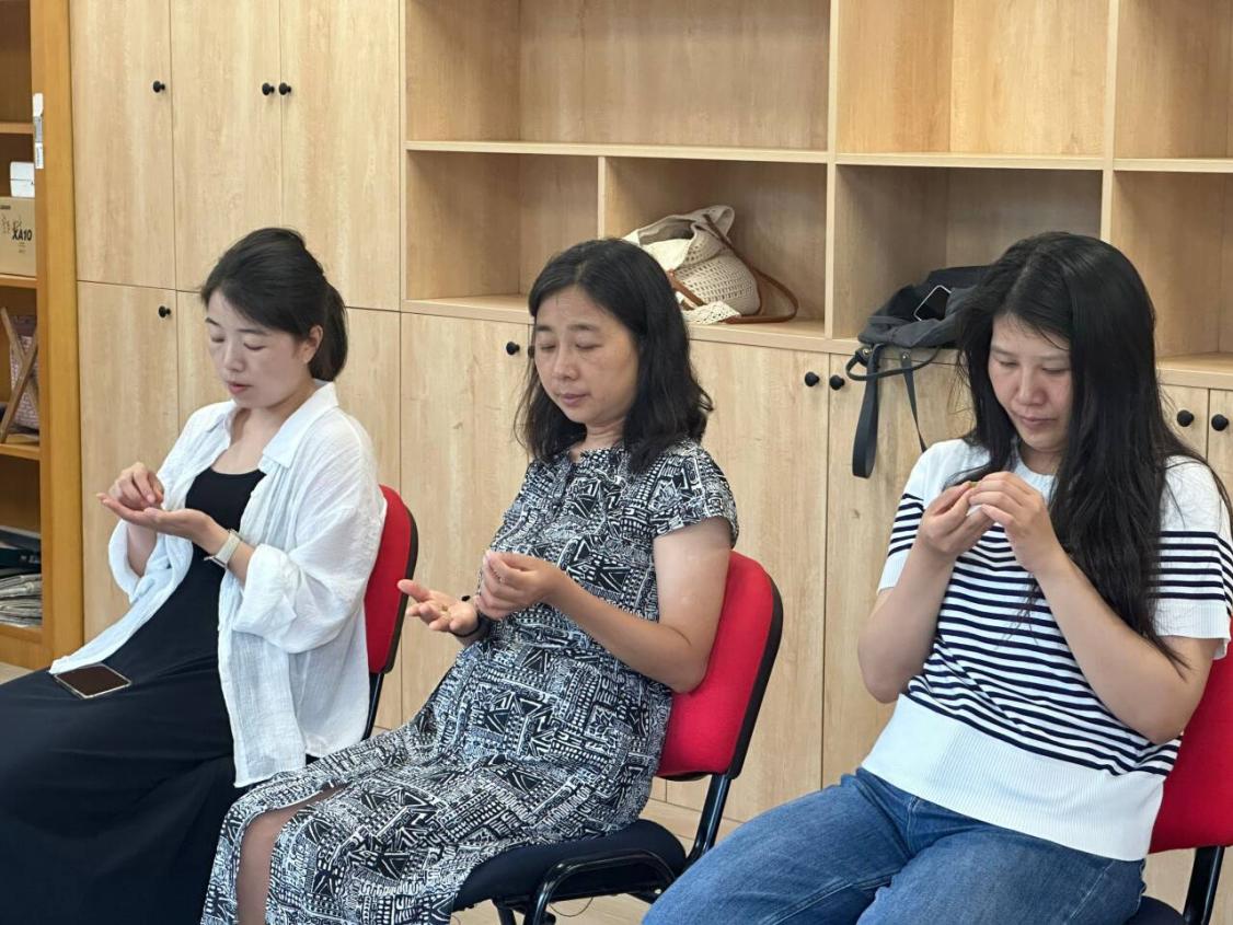 活动最后,全体参与者共同朗读一首小诗,诗中 “愿我懂得每天滋养内在喜悦的种子,愿我能够活得清新、安稳与自在” 的句子引发大家共鸣。通过本次活动,教师们不仅实现了身心放松、缓解了压力,更在正念体验中体会到自我的存在,探寻到内心深处的平和与力量。