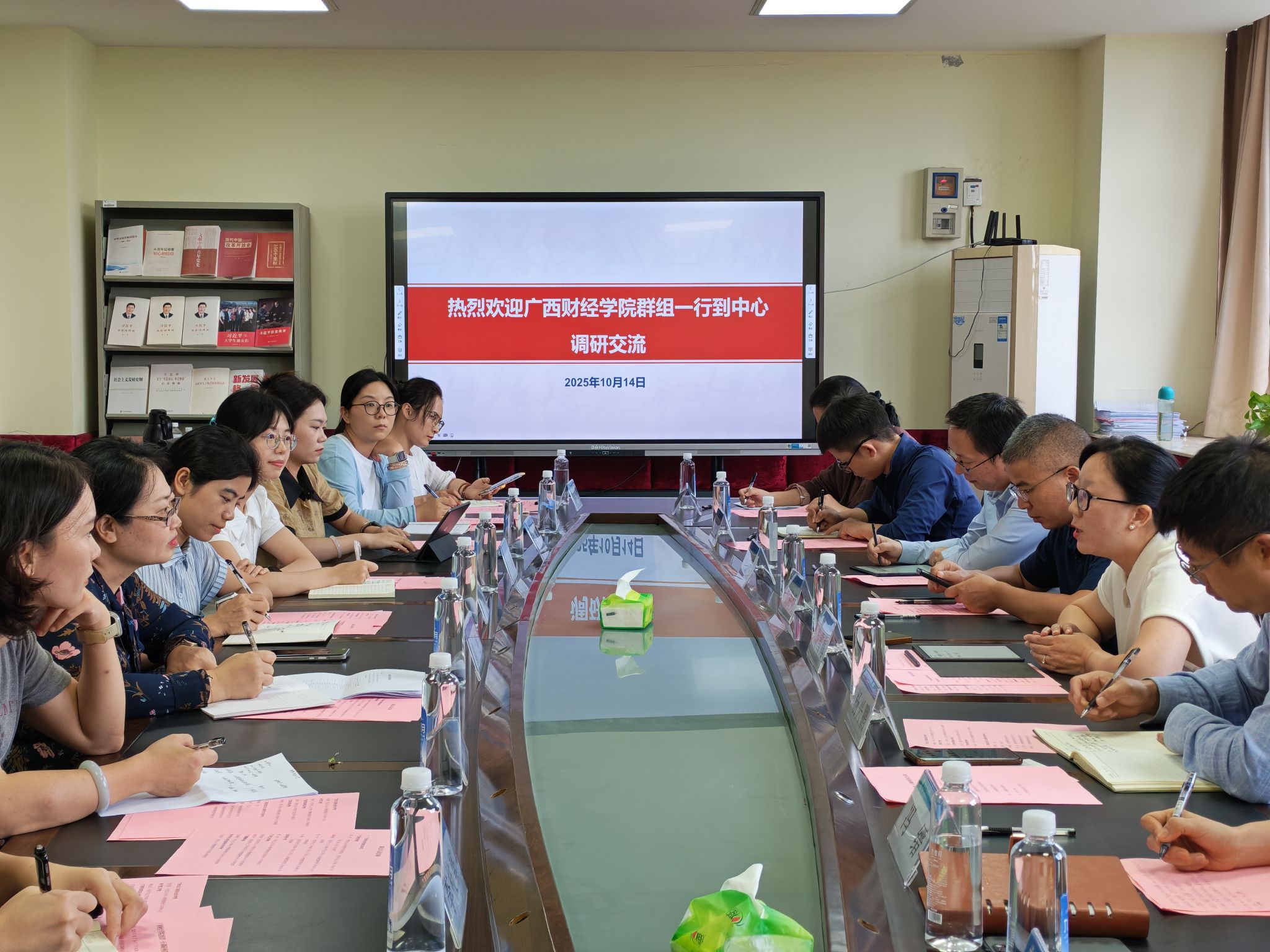 为推进落实心理健康教育互助共建大行动,提升高校心理健康教育工作水平,2025年10月14日下午,广西财经学院群组一行到中心调研交流。中心主任高雪梅主持座谈会,中心副主任李启明及教研室相关负责人参加。