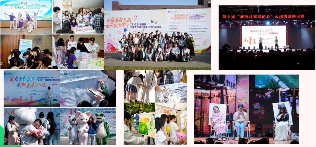 近年来,他们活跃在 校-院-班-寝 四级网络中, 依托各学院 二级心理辅导站 和院系联系工作 ,实现心理服务精准下沉 , 是危机预防的前沿哨兵 , 也 是 五育融通 的生动实践者,在 “ 3·25 ” (善爱我) 、“ 9·25 ”( 久爱我 )、“ 谁的月亮谁的心 ” 校园心理情景剧 等品牌活动中,将心理健康教育融入德、智、体、美、劳的全面发展中。这一切的系统性实践,共同构筑了我校 “一核两翼三阶五融合六覆盖” 的大心理育人格局 , 推动全员心育走深走实 。