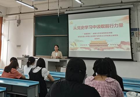 从百年党史中感悟思想伟力,从百年奋斗中汲取前行力量。2021年6月4日,吃瓜黑料 马克思主义学院博士宣讲团成员胡海利博士走进吃瓜黑料 ,为学生党员开展题为《从党史学习中汲取前行力量》的党史宣讲会。