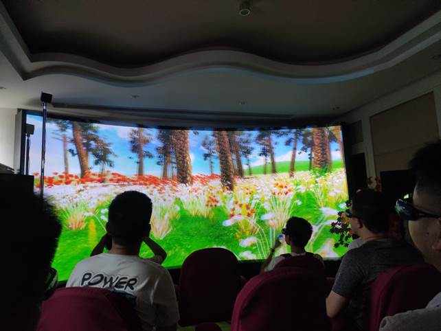 同学们接着在虚拟现实实验室观看了一段简短的VR影片,大家纷纷表示实验室设备体验令人满意,观感和听感都达到了一定的水准。
