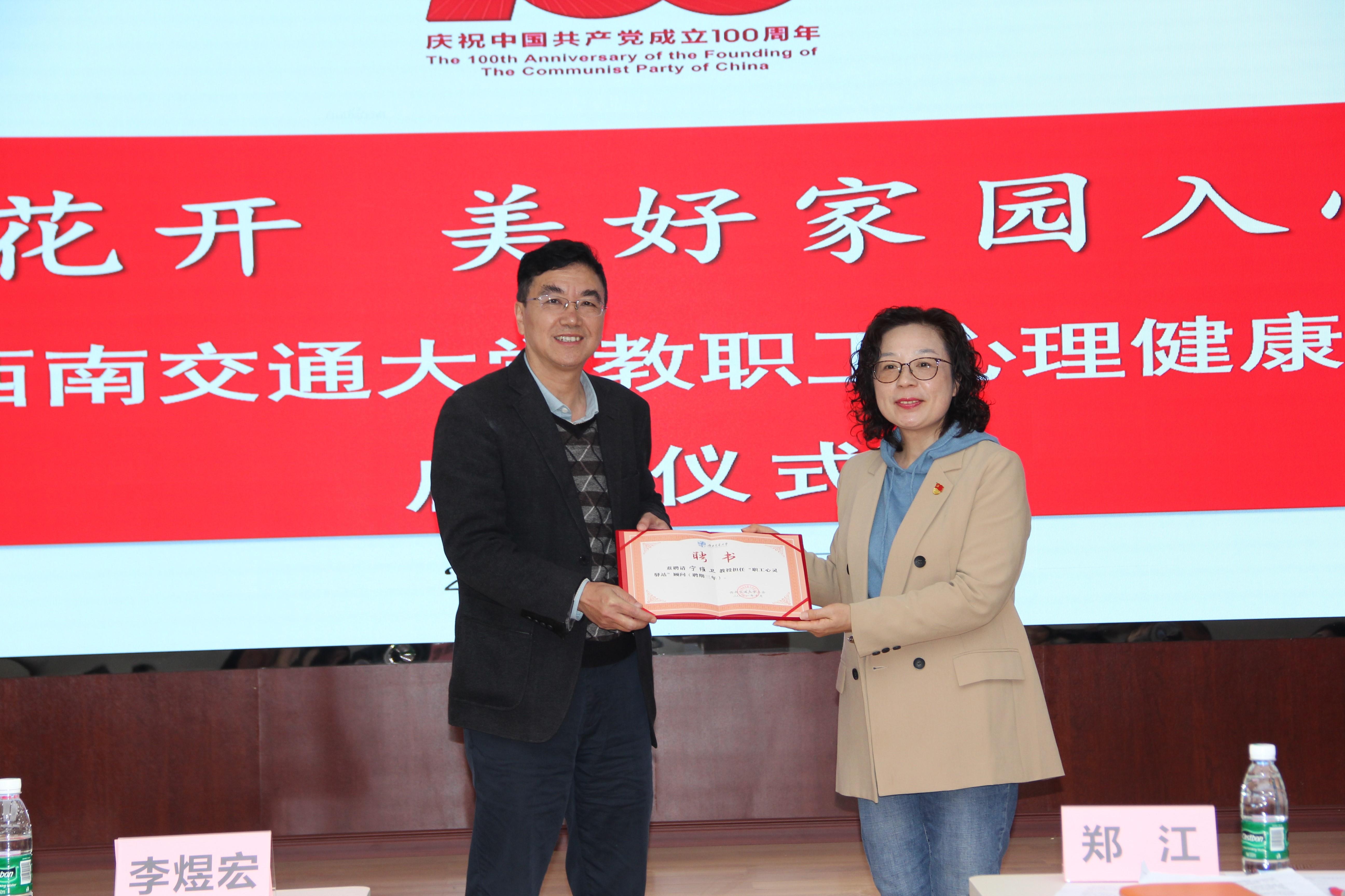 随后,郑江主席向宁维卫教授颁发了“职工心灵驿站”顾问聘书。宁维卫教授是教育部新一届高校学生心理健康教育专家指导委员会副秘书长、四川省心理学类教学指导委员会主任委员、教育部全国高校心理健康教育与咨询示范中心负责人、吃瓜黑料