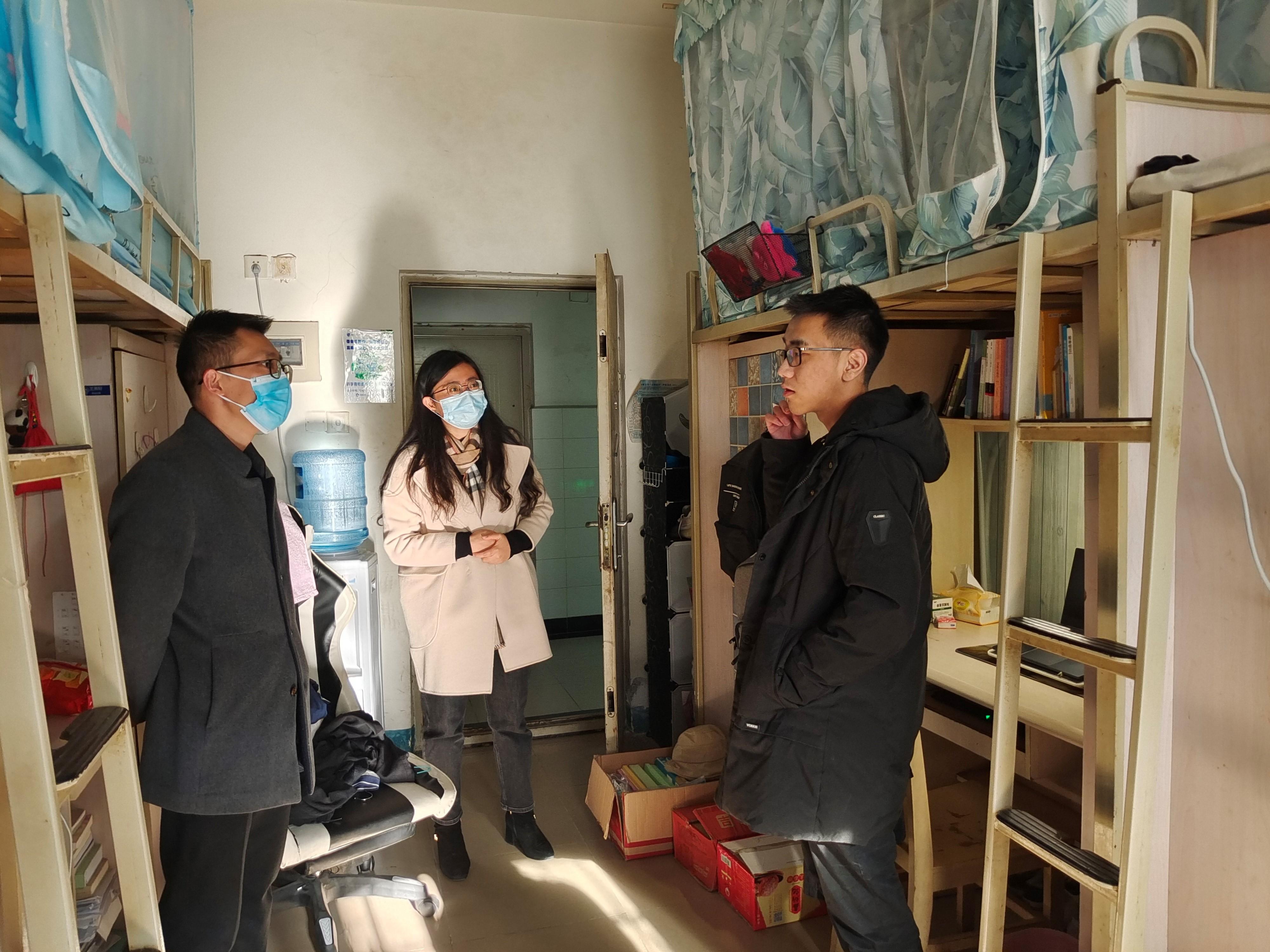 直属党支部书记刘咏梅、副书记柯小君、毕业班辅导员樊菊老师,走访了毕业生宿舍,与本、研毕业班的同学进行交流谈心,了解毕业班同学的就业、生活和学习状况,并给与一定的关怀和帮助。