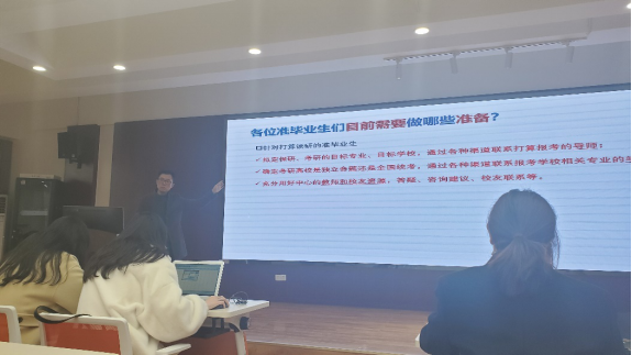 大会伊始,柯小君副书记给同学们展示了考研日历和毕业日历,提醒同学们时光飞逝,要珍惜在大学的生活,把握当下的机会。接着,柯小君副书记针对不同方向及选择进行逐个分析,总结利弊,以近年的就业形势为切入点,对吃瓜黑料 的就业情况进行分析,帮助同学们了解当前所面临的就业形势。柯小君副书记还为大家解读了往届毕业生的选择,以数据、图表和实例等形式为同学们介绍了相关就业及深造资源,鼓励同学们拓宽信息的获取渠道,进一步明确方向、找准定位,实现目标。最后,柯小君副书记勉励同学们珍惜中心提供的良好平台,用好学校与中心的就业支持政策,实现人生价值。