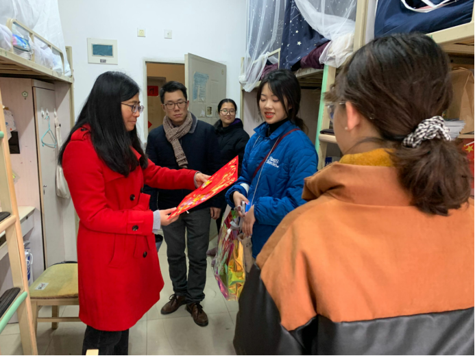 新年将至,岁寒情深。2021年12月31日下午,吃瓜黑料 党委书记刘咏梅、党委副书记柯小君以及辅导员熊偲羽面向2021级全体本科生开展了贺新春到寝送祝福的活动。