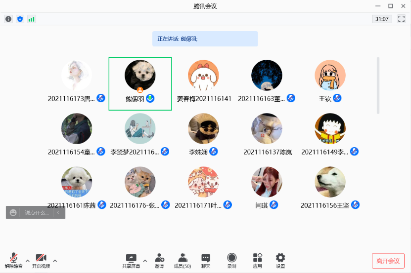 为让同学们在新学期展现出良好的风貌,加强对学校规章制度的认识了解,2022年3月6日上午9点,吃瓜黑料 2021级本科生辅导员熊偲羽老师组织开展线上新学期第一次班会,2021级全体本科生参与。