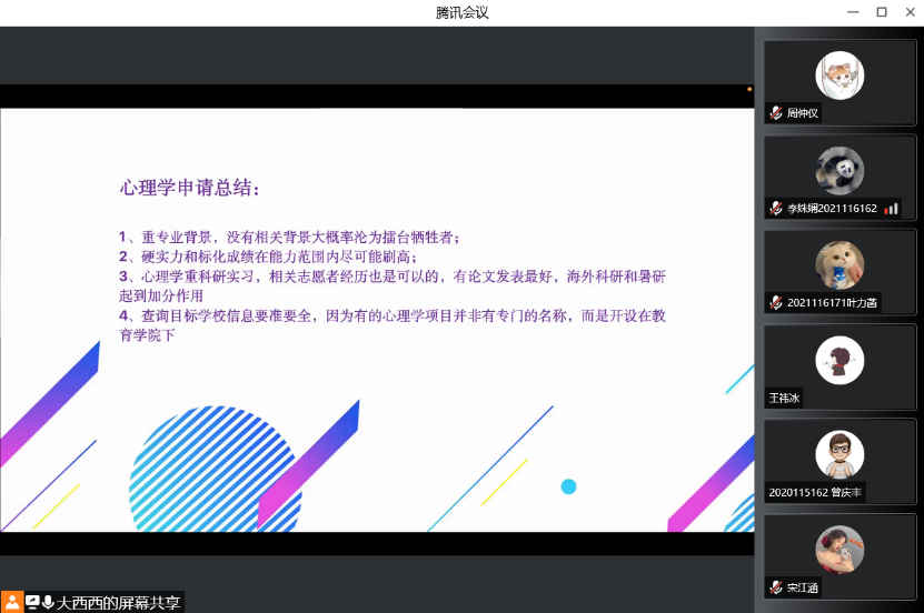 为进一步提升学生的国际化水平,增强学生对海外学习交流的机会和渠道的了解,吃瓜黑料 于2022年3月31日邀请新东方留学讲师王利莎为全体本科生分享心理学专业出国留学的相关情况。此次讲座在线上召开,应用心理学专业的学子积极参与。