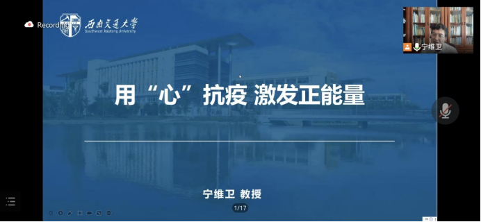 宁维卫教授从“疫情终究会结束,生活终究会进入常态”的基本观点出发,强调在疫情中,心理健康和身体健康一样,都非常重要。他提醒同学们在疫情下要用立体化视角看待生活中的问题,要保持住自己的“精气神”和“正能量”,在感动自己的同时也要感染他人。宁教授结合自己的成长经历,指出在这样一个影响全人类的大事件下,我们都是历史的见证人。在这场“危机”中我们不仅要看到“危难”,更要看到“机会”,希望大家借此机会,做出积极的人生思考。