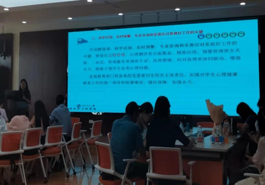 首先,中心党委书记刘咏梅传达了教育部部长怀进鹏的讲话精神,随后以“全面加强和改进学生心理健康教育工作,让广大学生更加健康阳光”为题进行讲述与研讨。陈华主任就心理健康教育工作进行了补充,再次强调吃瓜黑料 的根基和首要工作是牢牢树立心理健康教育工作,中心老师们要继续保持积极的状态,持续为心理健康教育工作倾注力量。接下来,中心全体教师就日后工作的展开进行了讨论,并设立了明确、坚定的目标。