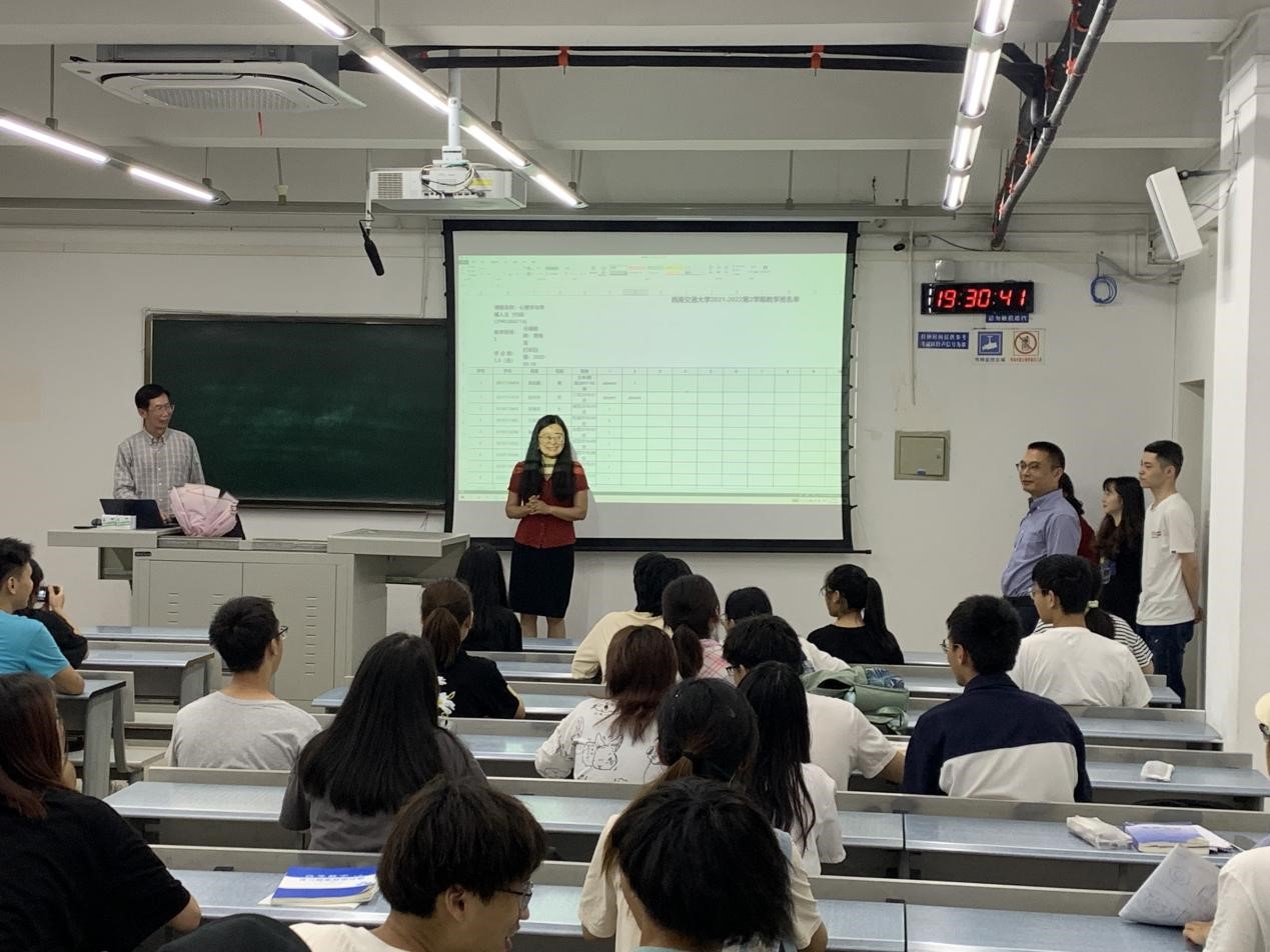“感谢您为交大做出的奉献,我们代表同学们感谢您!”在犀浦校区教室里,一场温暖的送别活动正在进行。两位学生正在向讲台上的费维宝老师敬献鲜花。