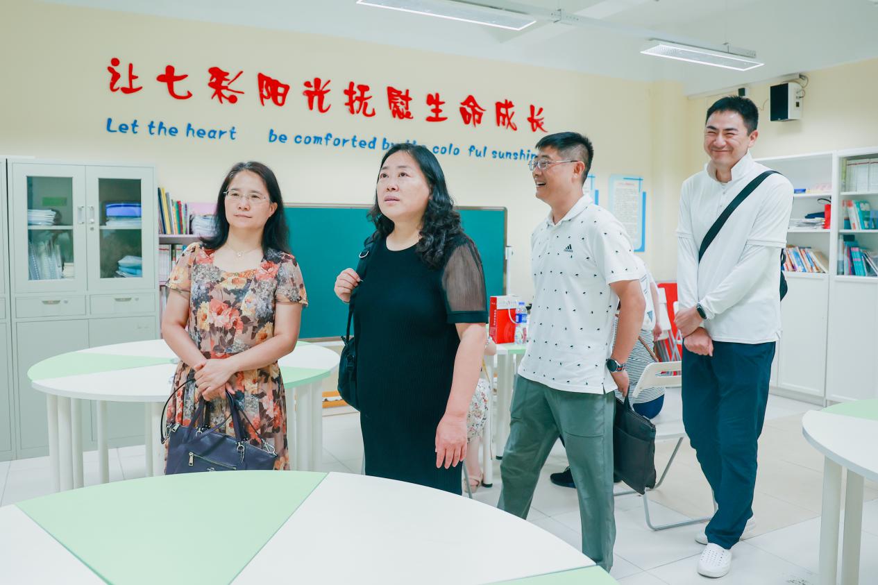 汪小容老师一行4人在参观了学校心理辅导室、团体辅导室等硬软件条件后,与学校心理健康教育工作负责人朱老师、艾副主任、黄老师就心理健康教育课堂教学、心理讲座、心理辅导活动以及优质资源引进等方面进行会谈,同时双方也就学生培养、实习基地建设等问题进行深入地沟通,双方表达了进一步深度合作的意愿,希望能够强强联手,为探索落实大中小心理健康教育一体化贡献各自的力量。