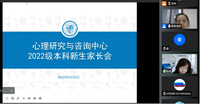 陈华主任、柯小君副书记、杨兴鹏老师与2022届本科新生家长进行了沟通交流。新生辅导员樊菊老师主持线上家长会。