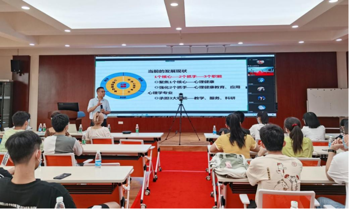 本次介绍共分为本科心理课堂教学、咨询危机干预、心理实验实训、心理健康研究、心理文化培育、社会心理服务六个部分,其中,雷鸣副教授特别指出“聚焦心理健康,以心理健康教育带动心理学学科专业发展”的学科发展要点,拓宽了22级本科新生对应用心理学的认识。