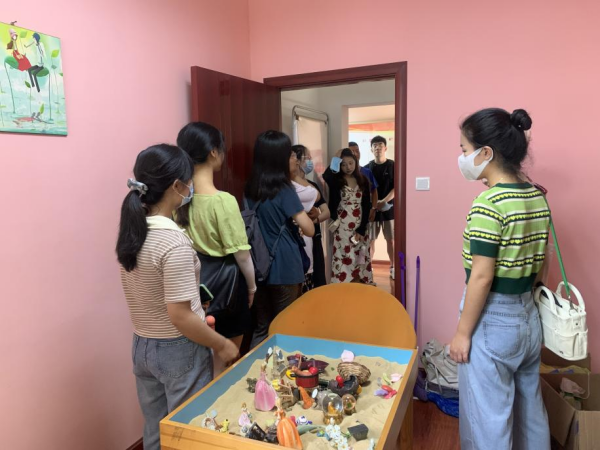 各教室的主要功能及各类设施,带大家参观了心理治疗模型:沙盘游戏。亲切的环境和愉快的氛围让研究生们充满了对未来学习的憧憬和向往。