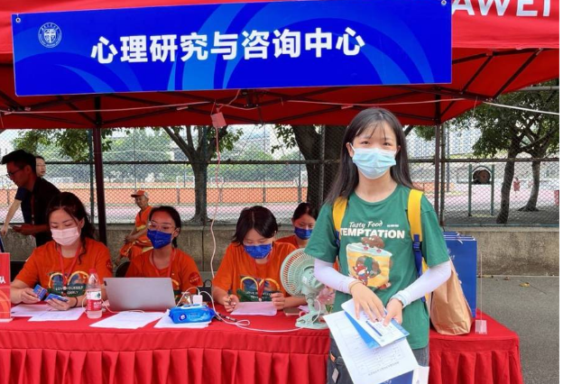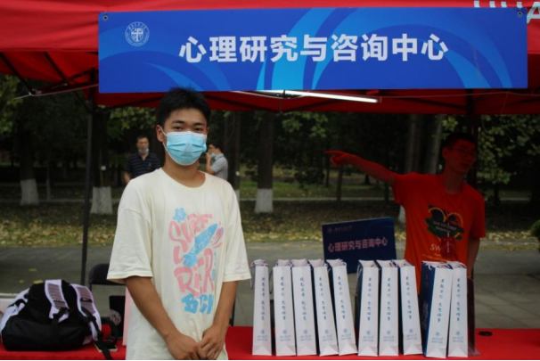 8月25日上午7:00,迎新志愿者们就已经早早地在迎新点等待着2022级心理人的到来,桌子上放置着准备好的防暑物品和新生大礼包。