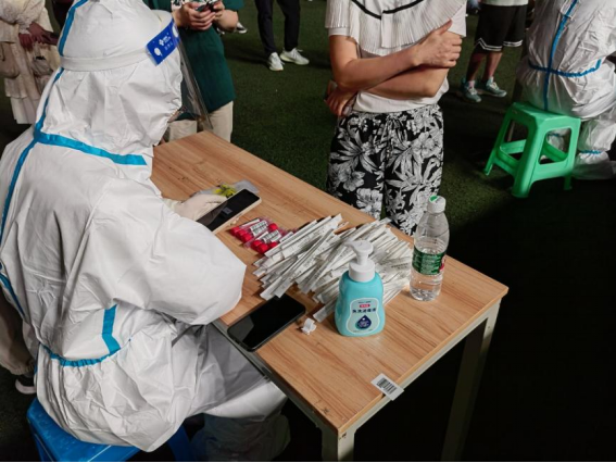 本科2021级2班辛姝辰担任犀浦北区操场核酸检测志愿者。前几日,成都核酸系统出现故障,核酸检测的等待时间较长。各志愿者体谅同学心情,安抚同学情绪,同学们也理解志愿者以及“大白”们的辛苦,最终克服困难。