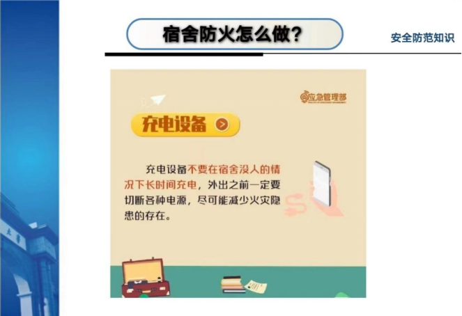 樊菊老师首先结合案例,以图文并茂的方式向学生们介绍了一些身边的安全隐患和安全风险,通过案例来加强警示教育;特别强调学生宿舍园区常见的安全隐患,尤其注意天冷可能会出现的一些违章电器;最后进一步明确班级安全委员的工作职责,要求大家做好日常安稳宣传、检查和信息上报等工作。