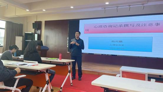 本次培训主题为“心理咨询记录撰写及注意事项”,该主题主要是针对中心新升级的心理咨询信息化系统在使用中遇到的新问题,以及进一步规范咨询记录而展开。杨兴鹏老师就这些主要的内容和注意事项为大家一一做了详细讲解。