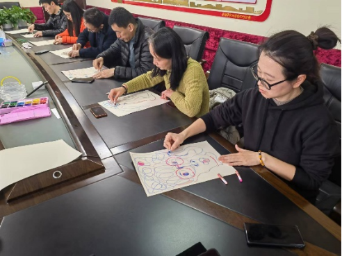 紧接着冯缙老师向大家展示和讲解了许多风格各异的涂鸦画作,借以打开大家的思路,激发潜能,以便在涂鸦中更好释放心灵,实现良好解压效果。随后进入了正式实施阶段,老师们都全身心地投入到了对作品的创作中。