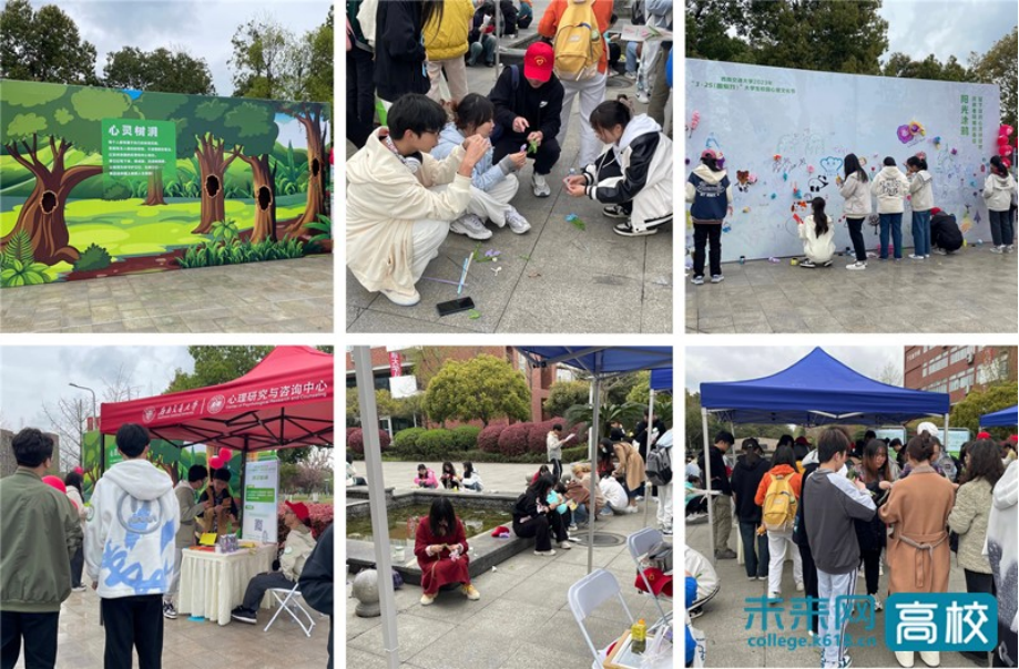 本次活动在犀浦、九里两个校区分别设立打卡点,开展五个主题活动。“一树洞天,好心好情”引导参与者倾诉心声,放下心理包袱,迈出“善爱我”的第一步;“一心一意,以文润心”通过拓印健心诗词、制作“扭扭花”,鲁班锁、九连环等独特手工体验缓解压力;“一道风景、一份心情”提倡用古诗配美景,在生活中寻找诗意;“一种生活、一种心态”通过茗茶品鉴传达养生养心的健康理念;“一彩一墨,描画描心”留给参与者创作空间, 传递“善爱我”的温暖。
