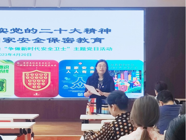 活动伊始,刘咏梅书记向大家传达了本次活动的意义,通过这次活动深入贯彻落实党的二十大精神,全面加强中心党员的国家安全保密教育,强化做好新时代新征程保密工作的责任义务,切实提升师生党员国家安全保密意识和保密常识,筑牢维护国家秘密安全的校园防线。刘咏梅书记强调,每一位党员都应将国家保密安全牢记在心,时刻警惕,不做出任何违反保密纪律,危害国家安全的行为,坚守底线,国家安全的保障出力尽责。