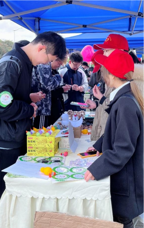 现场的师生们在大学生创造学会的干部团和志愿者的引导下,有序的参与活动,陆陆续续的完成了挑战,领取到了自己心仪的奖品,活动氛围十分融洽。
