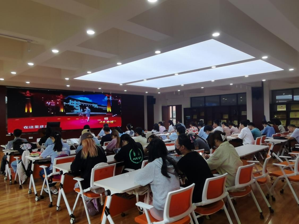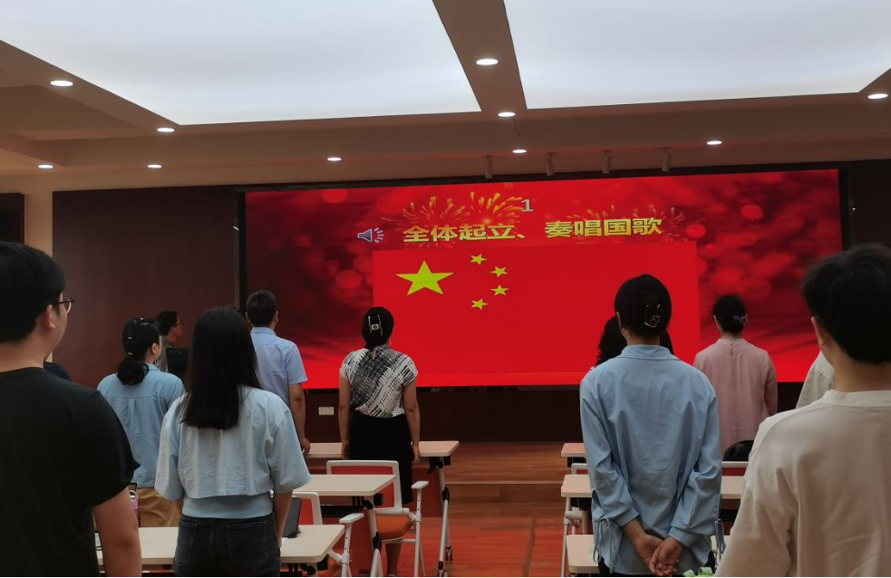 表彰大会最后,全体奏唱国际歌,并共同观看了国家智慧教育服务平台微党课《时代楷模黄大年》。
