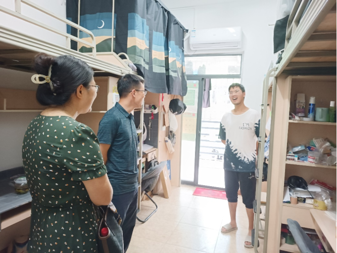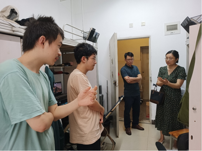 在本科生寝室,刘咏梅书记对留校同学暑期的生活、学习、实习等情况进行详细了解。刘书记特别嘱咐同学们要提高自身安全意识,注重身体健康,严格遵守学校相关管理规定,确保留校期间的安全。柯小君副书记鼓励同学们利用暑假时间多尝试实习实践,了解行业前景,为以后职业发展打好基础,同时留校期间要和睦相处、互帮互助、注意寝室防火防盗。