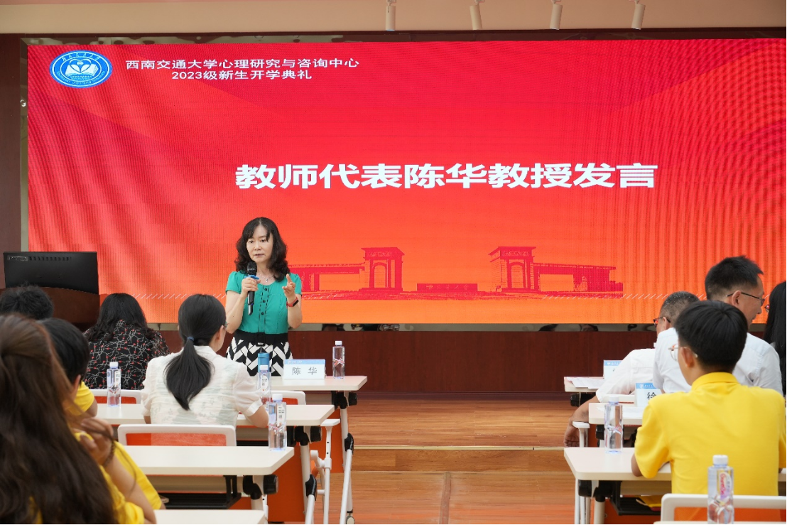 最后,本科生新生代表李晓彤、研究生新生代表杨谨先后发言。李晓彤同学表示,大学新阶段选择了心理专业,就要学好心理专业知识,并将之灵活运用,知行合一,在实践中体悟知识,以此来更好地服务社会。杨谨同学表示,在西南交大开放、包容的学习平台,希望可以和同学们一起持之以恒,锲而不舍,摆正求学的态度,紧跟导师的步伐,在学术路途上留下脚印。
