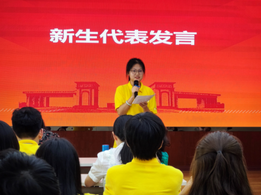 随后,教师代表陈华教授讲话。陈教授向同学们强调了及早树立目标的重要性,注意免研计算方法,不能松懈。同学们还要懂得珍惜时间,提高自我管理能力,自立自强。陈教授提醒大家,大学是人生的关键阶段,能够奠定人生的底色。注重自身综合素质的发展,立德立言立行,在社会立足。