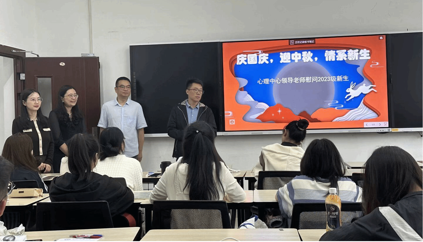 党委书记刘咏梅、雷鸣副主任(主持工作)、副书记柯小君、辅导员樊菊于9月27日及9月28日到九里和犀浦分别慰问本研新生,并送上节日祝福。