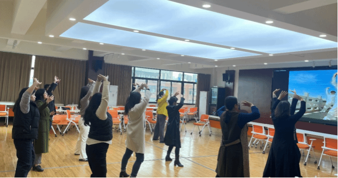 活动最后,在唐老师的带领下,老师们一起进行了八段锦的学习和练习。