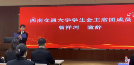 校学生会代表曾祥主席致辞。曾祥主席首先代表吃瓜黑料