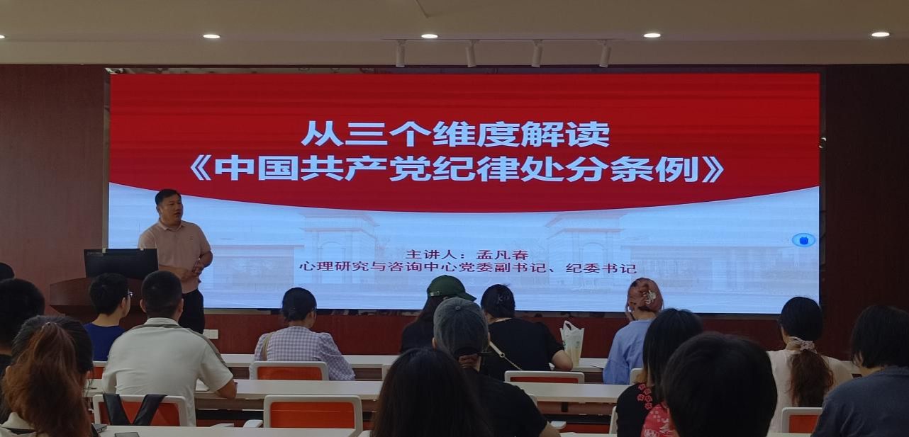孟书记从“历史维度:党史上的纪律条例修订”、“理论维度:彰显马克思主义政党的根本属性”、“内涵维度:集中体现十八大以来党的纪律建设创新成果”三个方面进行了深入的讲述。他指出,新修订的《中国共产党纪律处分条例》落实了党的二十大对全面加强党的纪律建设做出的战略部署,完善了党组织和党员不可触碰的“底线”清单,有助于发挥纪律建设标本兼治作用,为以后中国式现代化全面推进强国建设、民族复兴伟业提供了坚强的纪律保证。