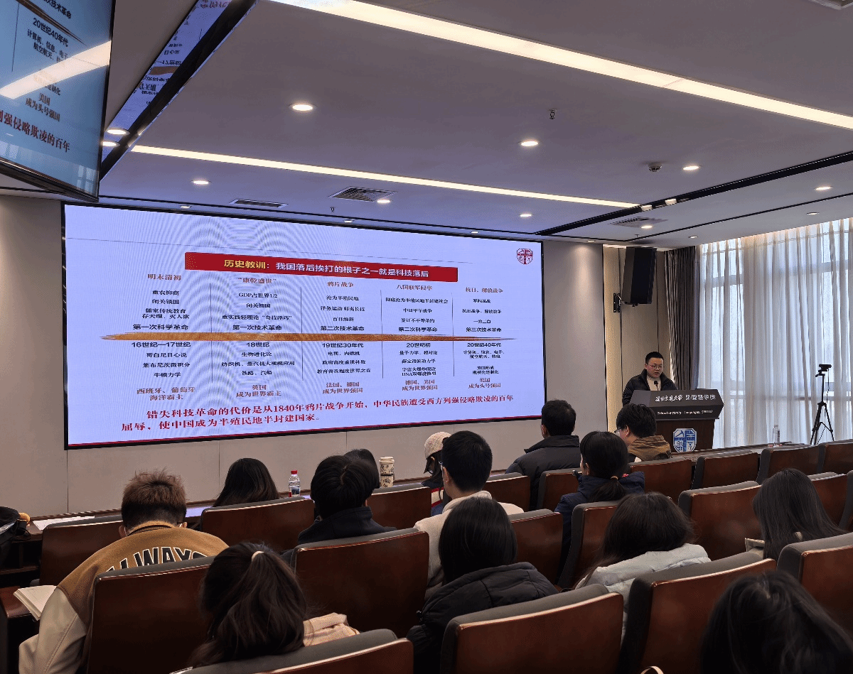 2024级研究生党支部联合外国语学院专硕党支部、集成电路科学与工程学院研究生党支部,于2025年12月4日下午举办“理论学习我当先”——研小扬精研理论读书班开班讲座。讲座特邀马克思主义学院讲师、外国语学院“融通共育”思政导师甄学涛,为党员同志们解读党的二十届四中全会精神。