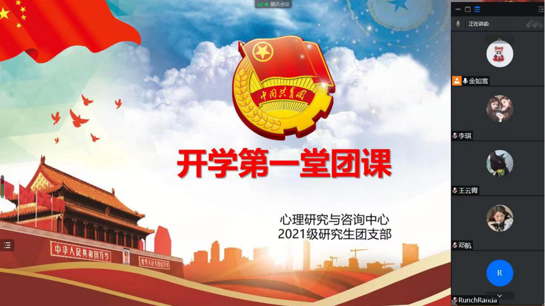 为了进一步加强团员的理论修养,增强团员对基础党团知识、国情校史知识的深刻认识,争做优秀团员,喜迎二十大,9月20日下午七点,2021级研究生团支部在线上开展了秋季开学第一堂团课的学习。此次学习由团支书金如雪主持,支部23名团员均按时参加。
