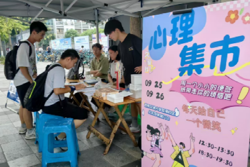 活动以“久爱我”为核心理念,巧妙运用数字谐音,寓意着持久而深厚的自我关爱之情,旨在构建一个充满正能量的心理文化空间,普及心理健康知识,引导同学们学会倾听内心的声音,积极面对生活中的挑战与压力。现场,“心理集市”以别具一格的创意形式亮相,成为连接心与心的桥梁。