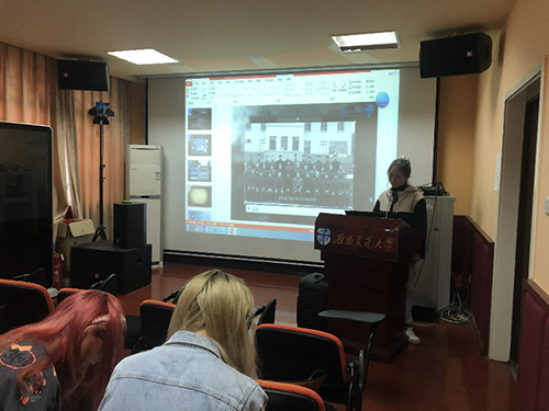 ”,学校的荣誉一直闪耀,这些光荣而伟大的岁月,那些将荣誉一直传承的优秀校友们,激起了同学们的在这片充满历史的土地上努力学习的热情。然后,团支书谢杭琦给同学们介绍了学校的学科建设以及科研情况,并播放了一个关于学校综合情况的视频,让同学们对学校有了更具体、更全面的认识,鼓励同学们好好学习,将来成才后不忘推动母校建设。