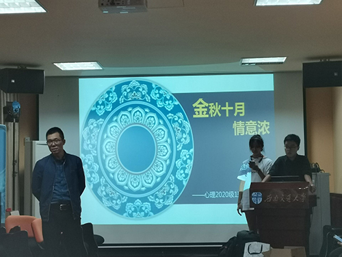 然后进行领导讲话环节。柯小君副书记在祝福大家节日快乐的同时,提醒大家节日期间出行注意安全,又不忘以幽默轻松的方式和语调请大家防范在秋冬季极有可能二次“返回”的新冠肺炎疫情;辅导员靳涵进行了爱国主义教育和传统节日教育,令同学们对国庆节以及中秋节有了更深入的了解,并再次强调,同学们在假期出行前必须认真填写“学生出行报备表”,并再次提醒同学们保护好生命财产安全。
