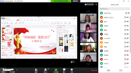 2018级本科2班通过直播软件召开了“同心战疫,爱国力行”主题班会。本次班会由2班团支书杨涵玉主持,吃瓜黑料