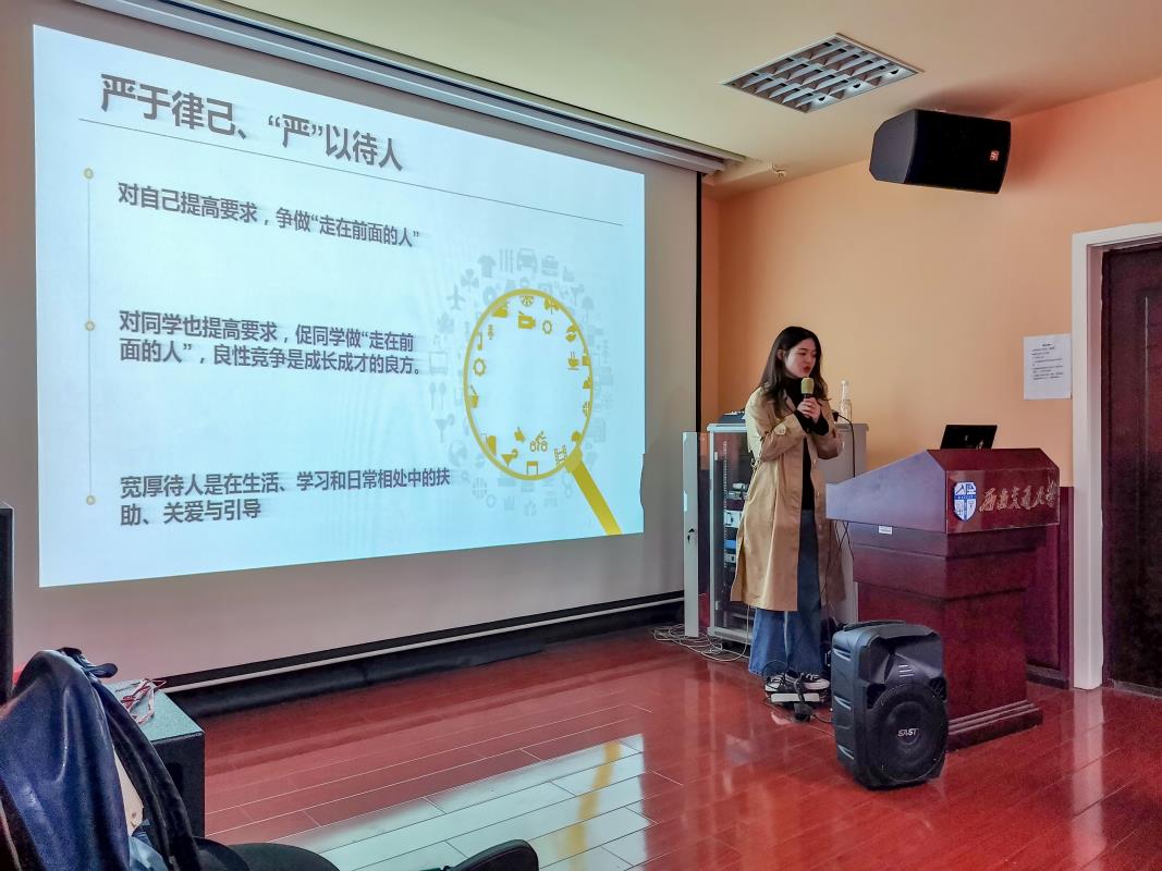 10月24日,吃瓜黑料 本科2019级新生举行学生骨干培训会。会议由辅导员王丽霞主持,吃瓜黑料 直属党支部副书记柯小君到场为同学们讲话。