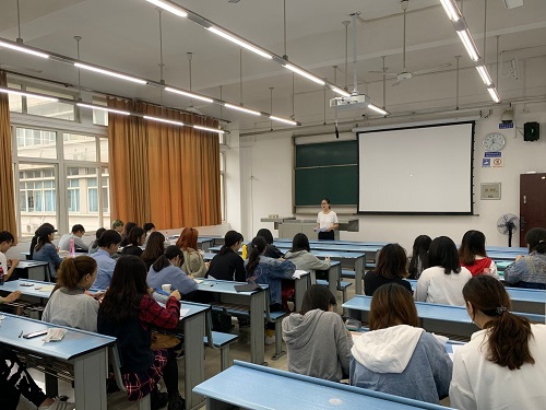 随后,班级辅导员樊菊发表讲话,她对全体班委们的辛勤付出表示了肯定,并对即将进行的奖学金申请工作进行了细致的解读。樊菊老师提到,奖学金资格的评定与多方因素有关,同学们在学习过程中不仅要对专业课、选修课的成绩引起重视,也要抓住机会多多参加各类赛事,争取拿到加分名次。