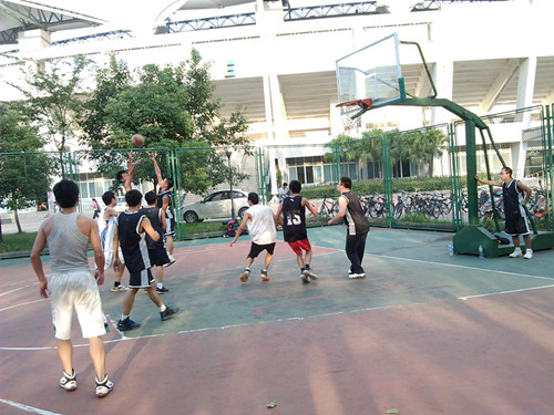 2012年9月23日下午,我们院系的篮球比赛进入到了白热化的情形。今天出战的队伍为大二篮球队和大三篮球队,是大家期待已久的比赛,双方队员一上场便立即投入到了紧张激烈的比赛中。