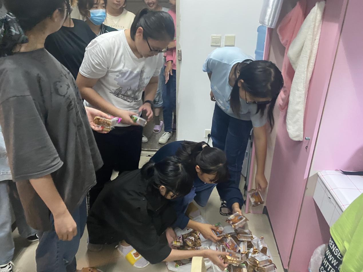 中秋佳节将至,9月18日下午吃瓜黑料 辅导员熊偲羽来到学生寝室给21级应用心理学本科新生们分发了代表中心所有老师心意的精美月饼。